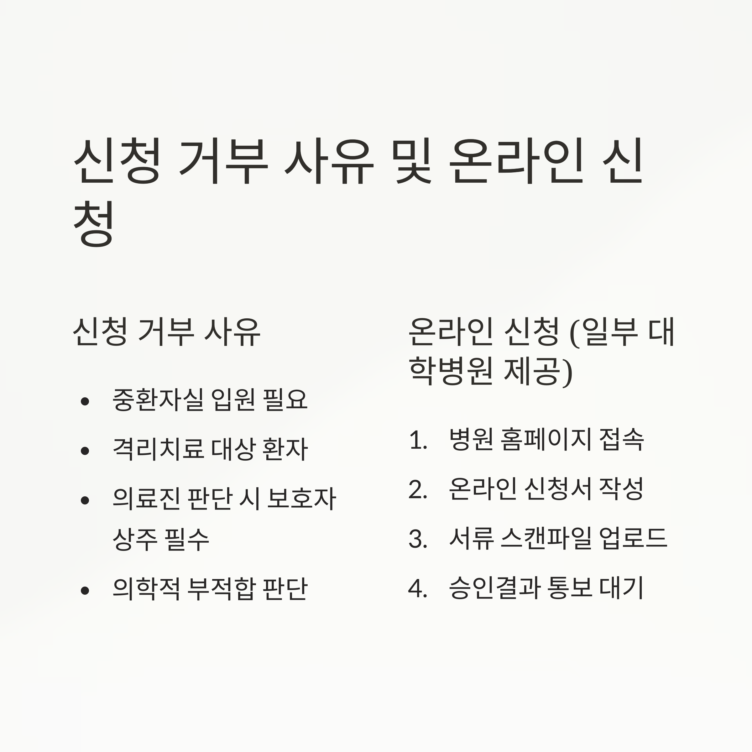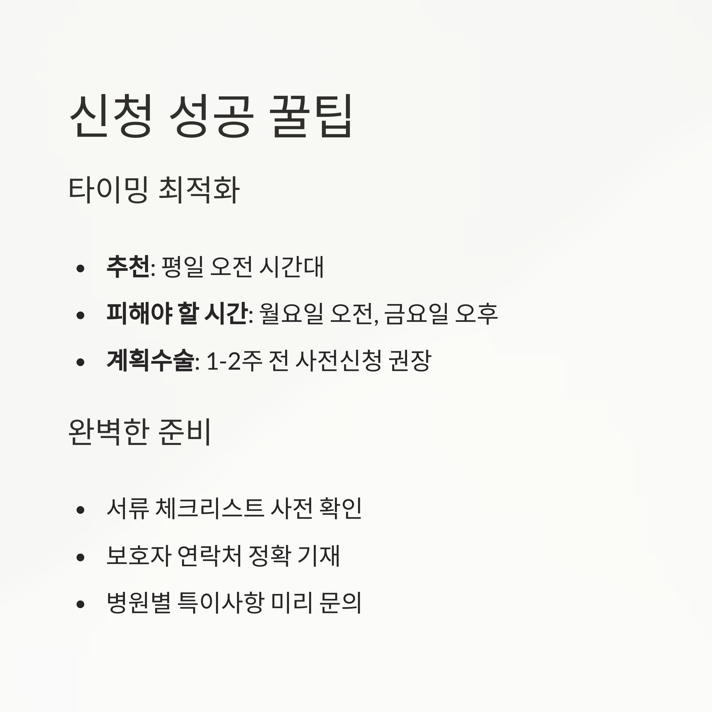 - 미리 신청: 계획된 수술이라면 1-2주 전에 미리 신청하세요