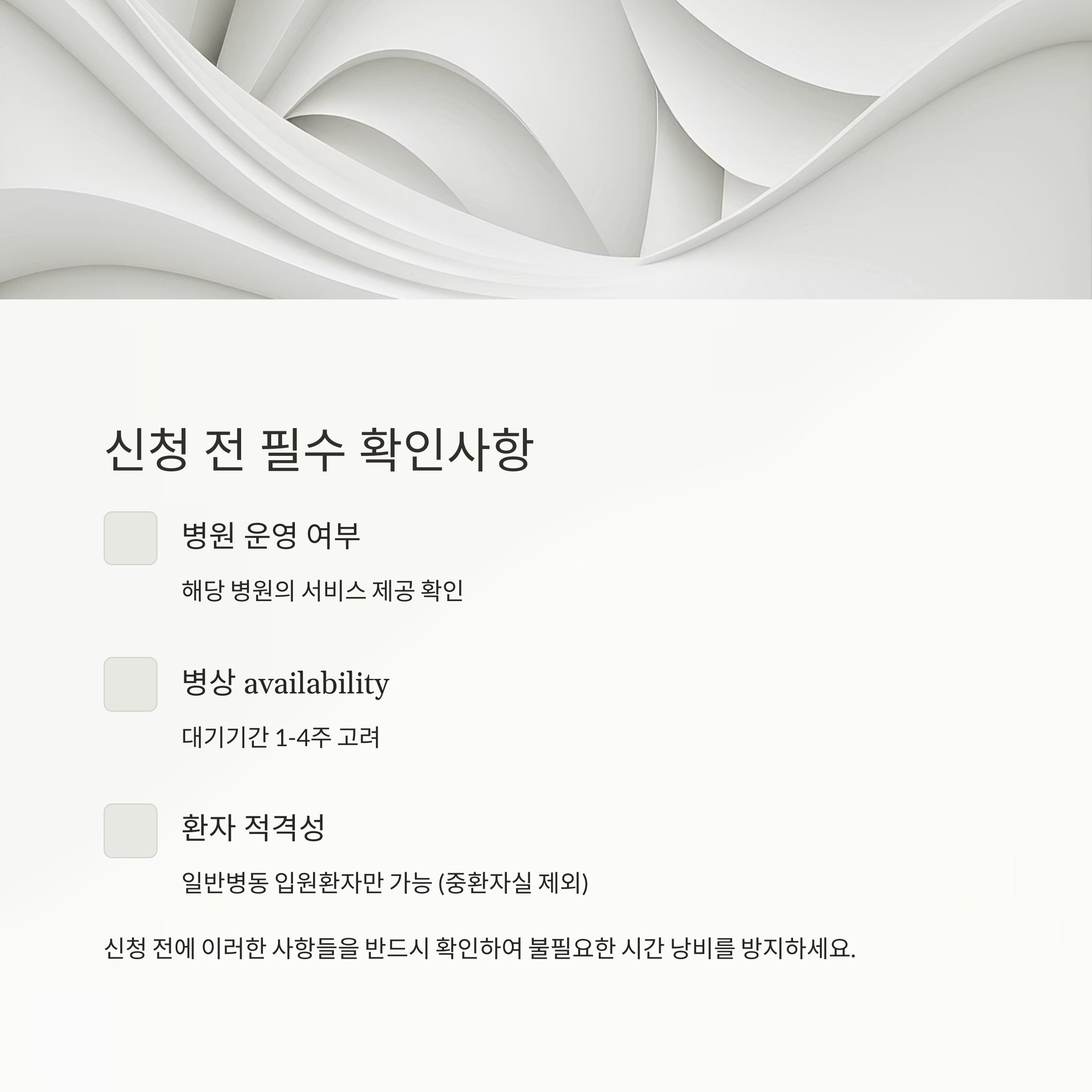 신청하기 전에 가장 먼저 확인해야 할 것은 해당 병원에서 간호간병통합서비스를 운영하는지 여부예요.