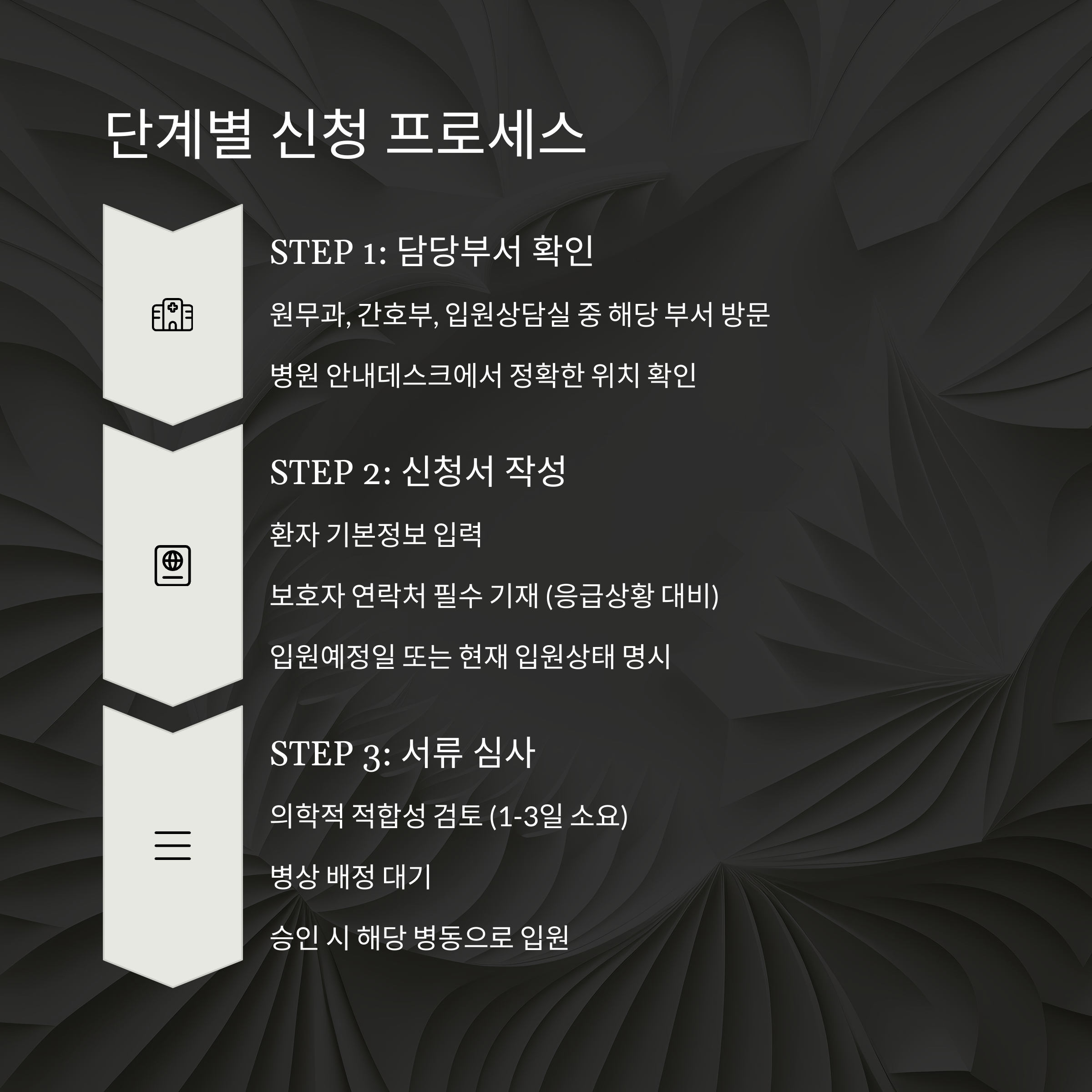 - 미리 준비: 응급 입원이 아니라면 사전에 서류를 준비해두세요