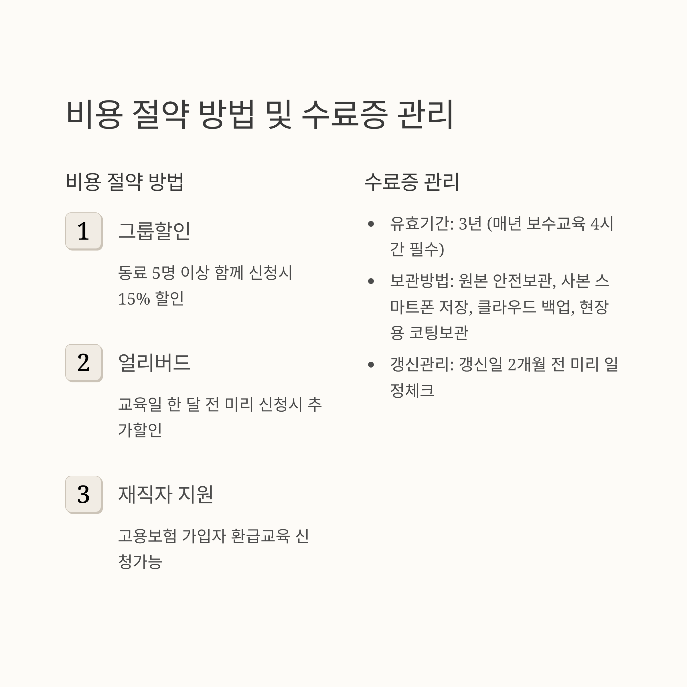 - 수료증 유효기간: 3년