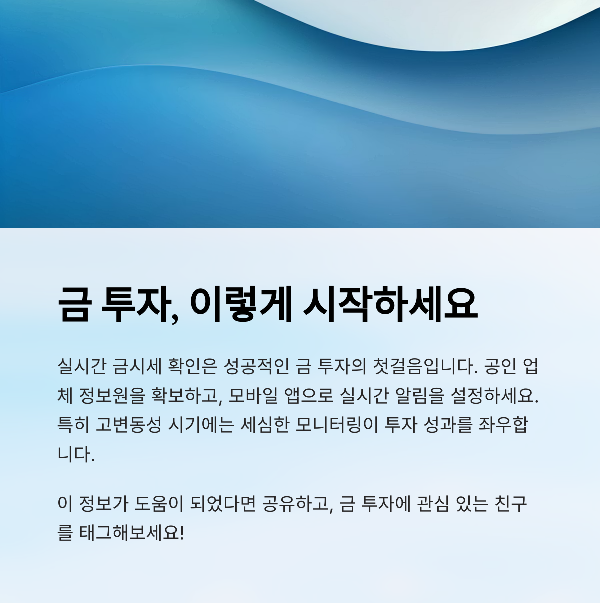 금시세 1돈 가격을 실시간으로 확인하는 것은 성공적인 금 투자의 첫걸음입니다. 위에서 소개한 방법들을 적극 활용하여 현명한 투자 결정을 내리시기 바랍니다. 특히 2025년 현재와 같이 금값 변동성이 큰 시기에는 더욱 세심한 모니터링이 필요하다는 점을 기억하세요.