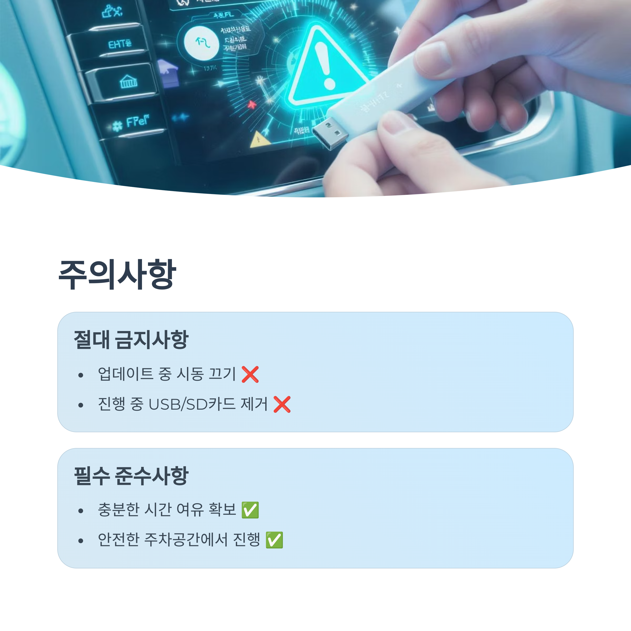 네비게이션 업데이트 과정에서 지켜야 할 중요한 주의사항들이 있습니다.